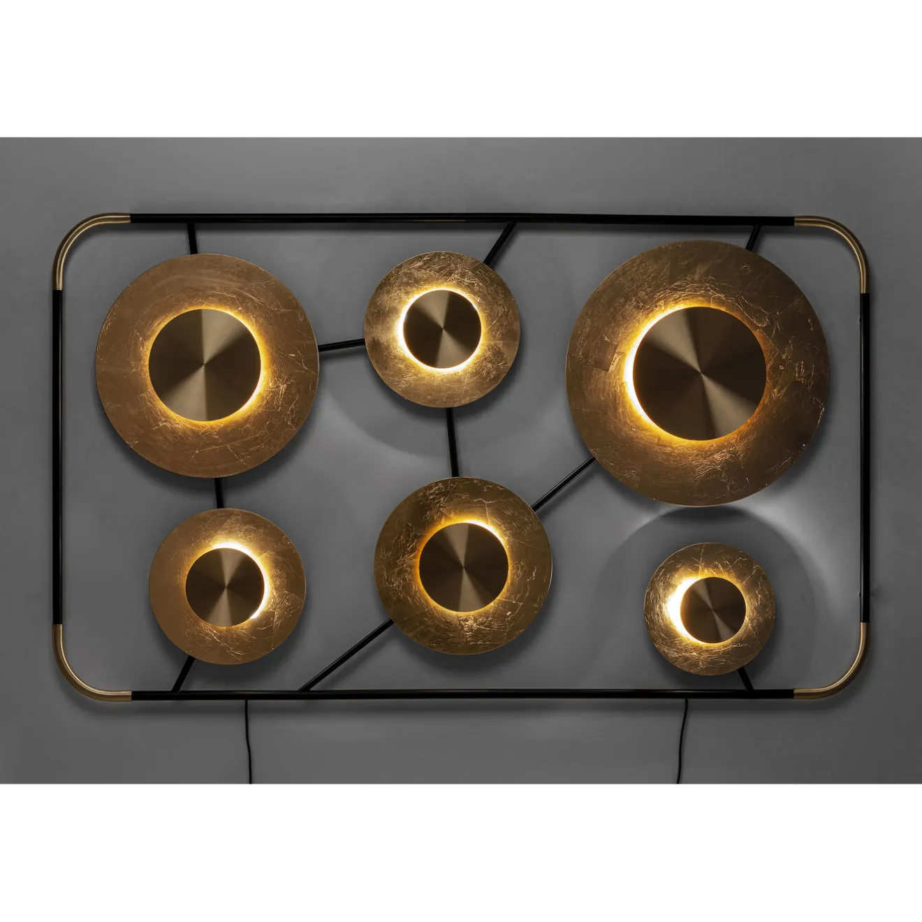 - Large Luminous Object For Wall Mounting With Six Round,Matt-Gold Shimmering Light Sources