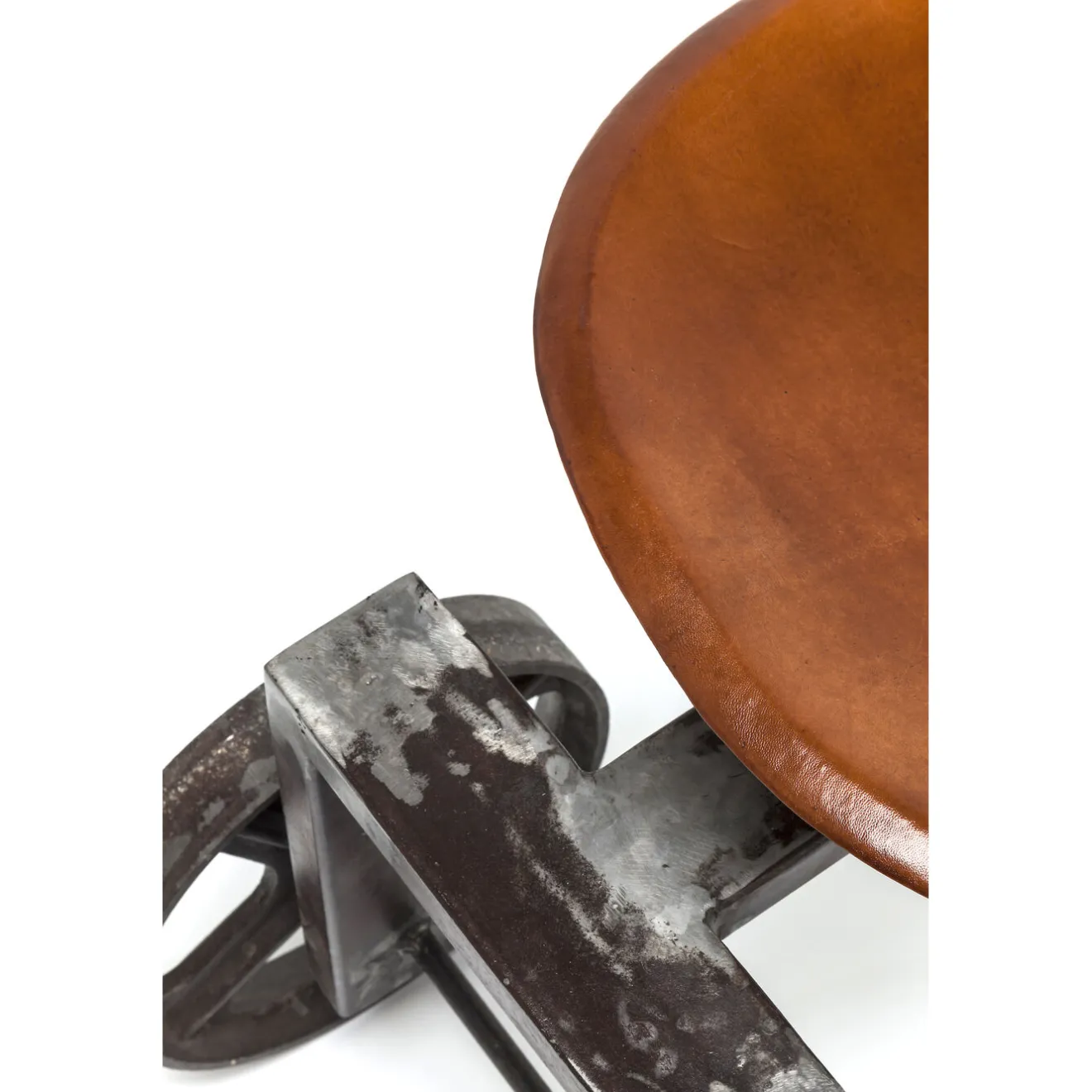 - An Iron Bench In The Industrial Style With Three Bowl-Shaped Seats,Covered With Leather