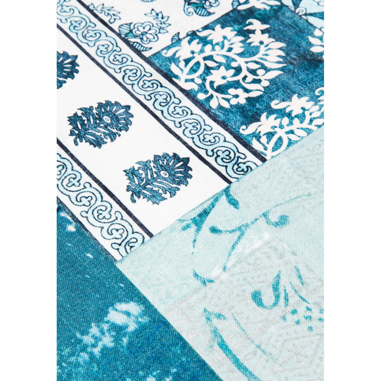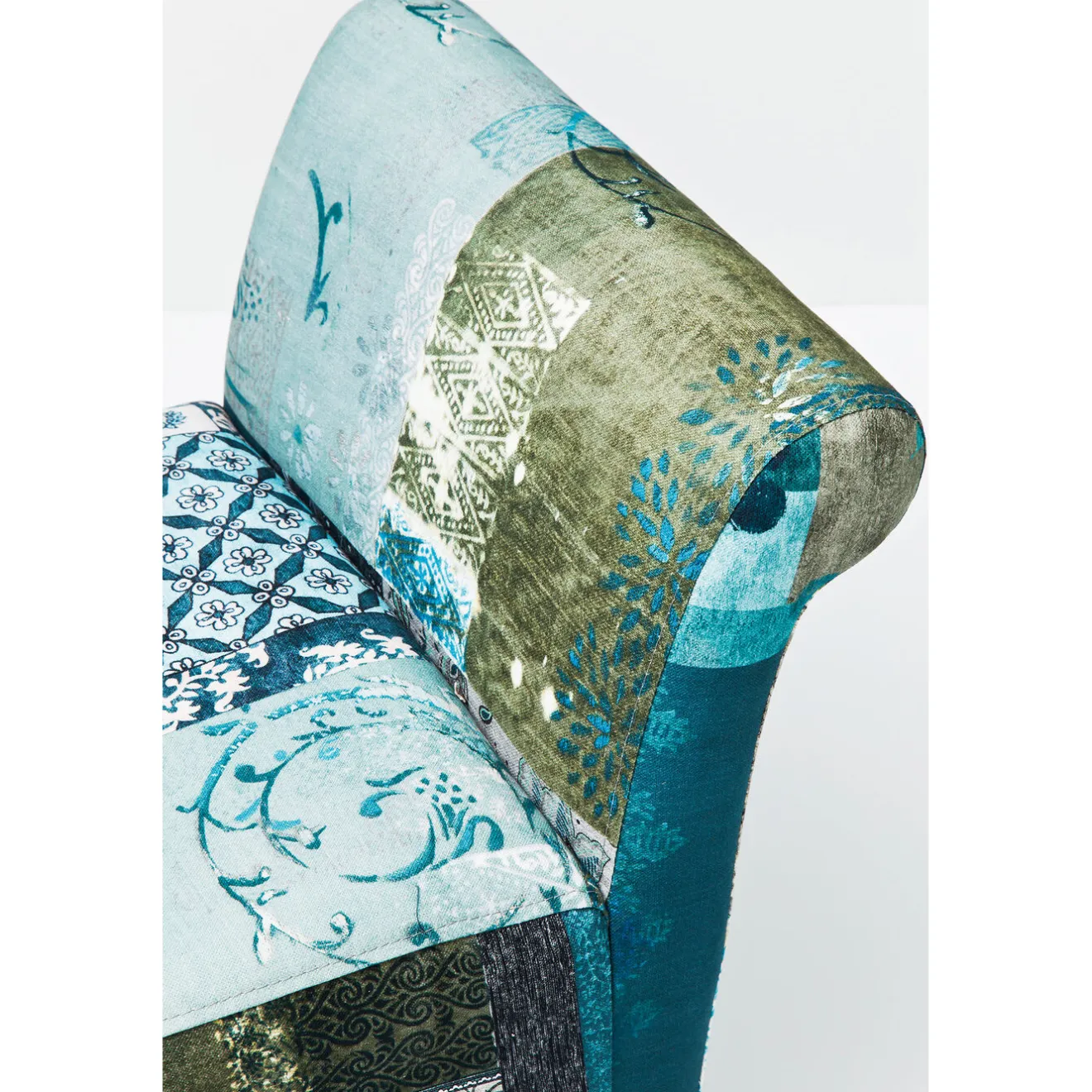 Confortable Et Solide Banc Avec Son Revetement En Tissu Patchwork A Dominance Bleue. Les Pieds Sont En Bois D Hetre Teintes Et Vernis. Rembourrage: Mousse Polyurethane 30Kg/M³.