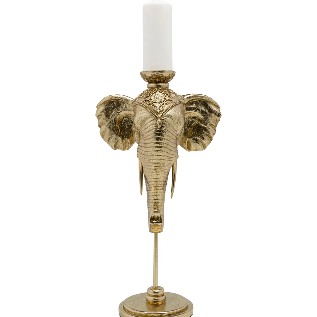 Les Elephants Apportent Le Bonheur-Et La Lumiere Dans Les Coins Sombres De Votre Salon. Avec De La Place Pour Une Bougie Ronde,Ce Grand Chandelier Dore Assure Une Lumiere Romantique Dans Le Salon Ou La Chambre A Coucher. Mais Meme Sans Flamme,La Tete D Elephant En Pierre Artificielle Robuste Et Facile D Entretien,Fabriquee Avec Amour A La Main,Décore Votre Interieur-Que Le Bougeoir Décoratif Soit Combine Avec Un Interieur Classique Ou Un Style Ethnique.