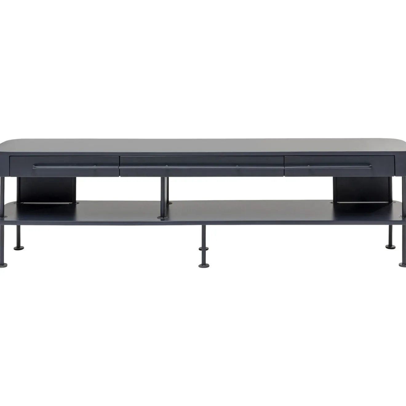 - Meuble Tv Gris Fonce Disposant De Trois Tiroirs Et D’Un Bel Espace De Rangement