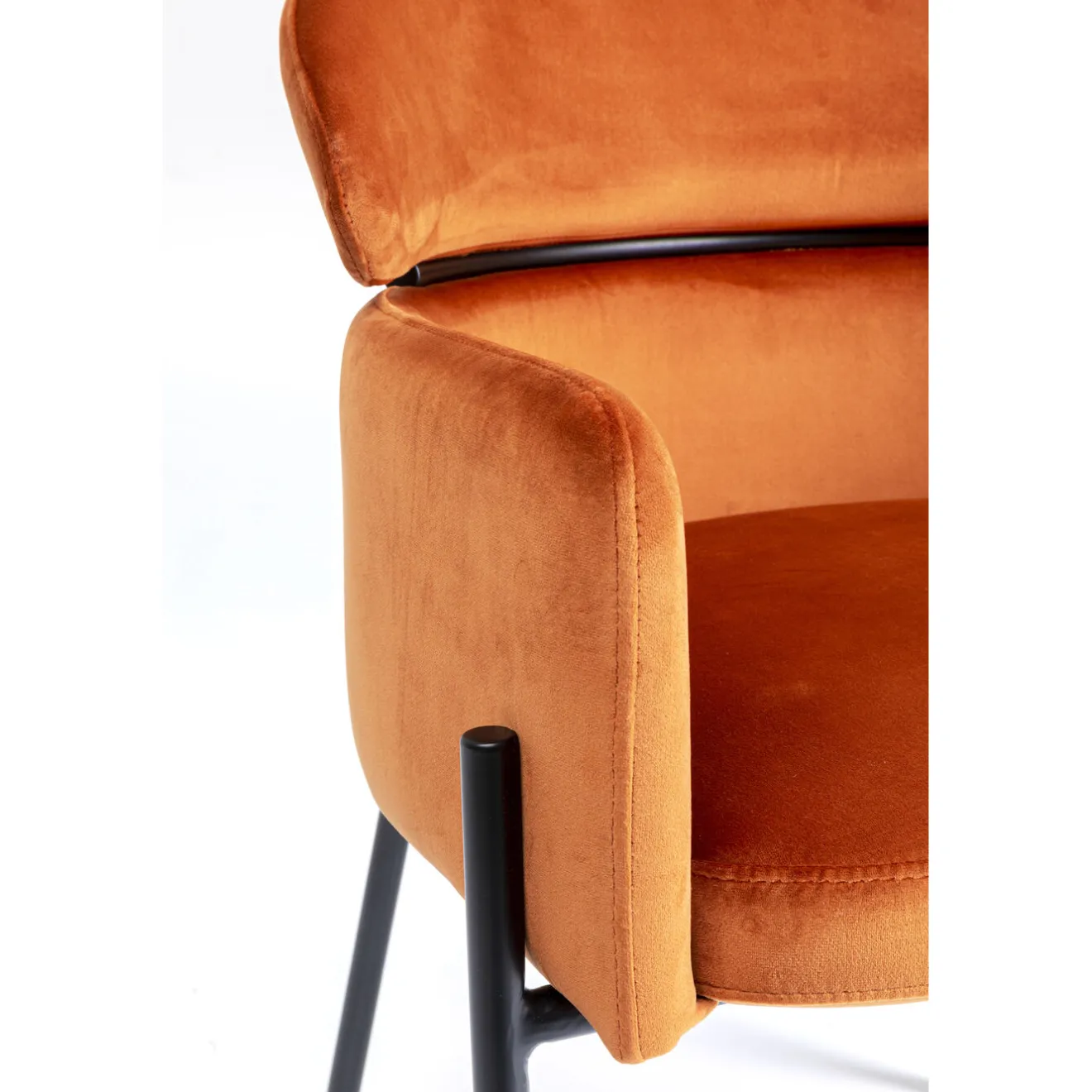 Un Design Qui Se Distingue Des Autres: Une Assise Ronde Se Fondant Joliment Avec Le Dossier Dans Un Doux Tissu Orange Effet Velours. Cette Chaise Trouvera Rapidement Une Place Dans Votre Interieur,Que Ce Soit Dans Le Salon,Le Couloir,La Chambre Ou Encore Pour Accompagner Une Coiffeuse Ou Un Bureau. Grace A Son Rembourrage Genereux,Elle Sera Egalement Tres Confortable En Tant Que Chaise De Salle À Manger. Parfait Pour De Longues Soirees A Table!