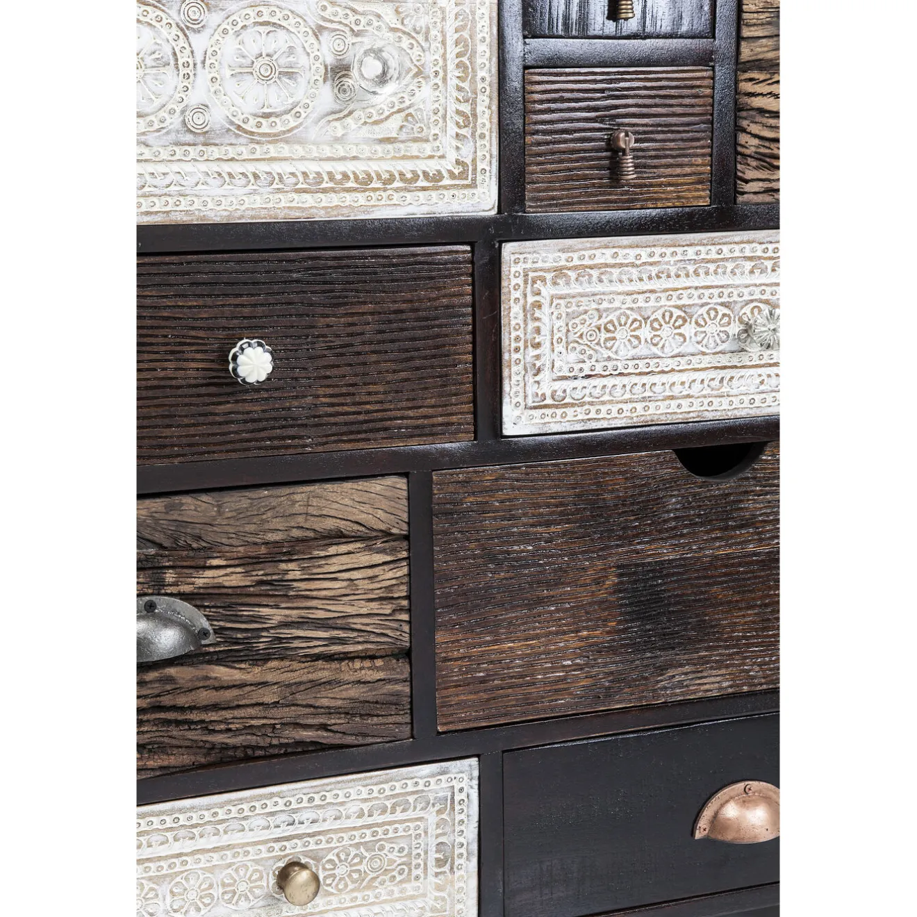 - Charming Design With 14 Different Drawers,Partly In Natural Wood And Partly Hand-Carved