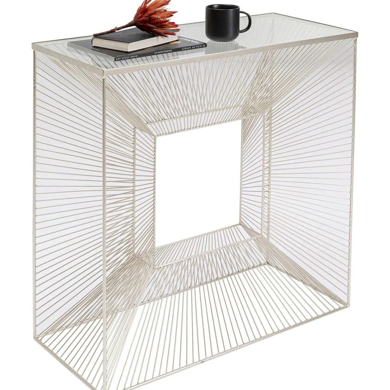- Console Avec Plateau En Verre Qui,Grace A Sa Structure Graphique En Fil D’Acier,Ressemble A Un Objet D’Art Moderne Pour Le Salon