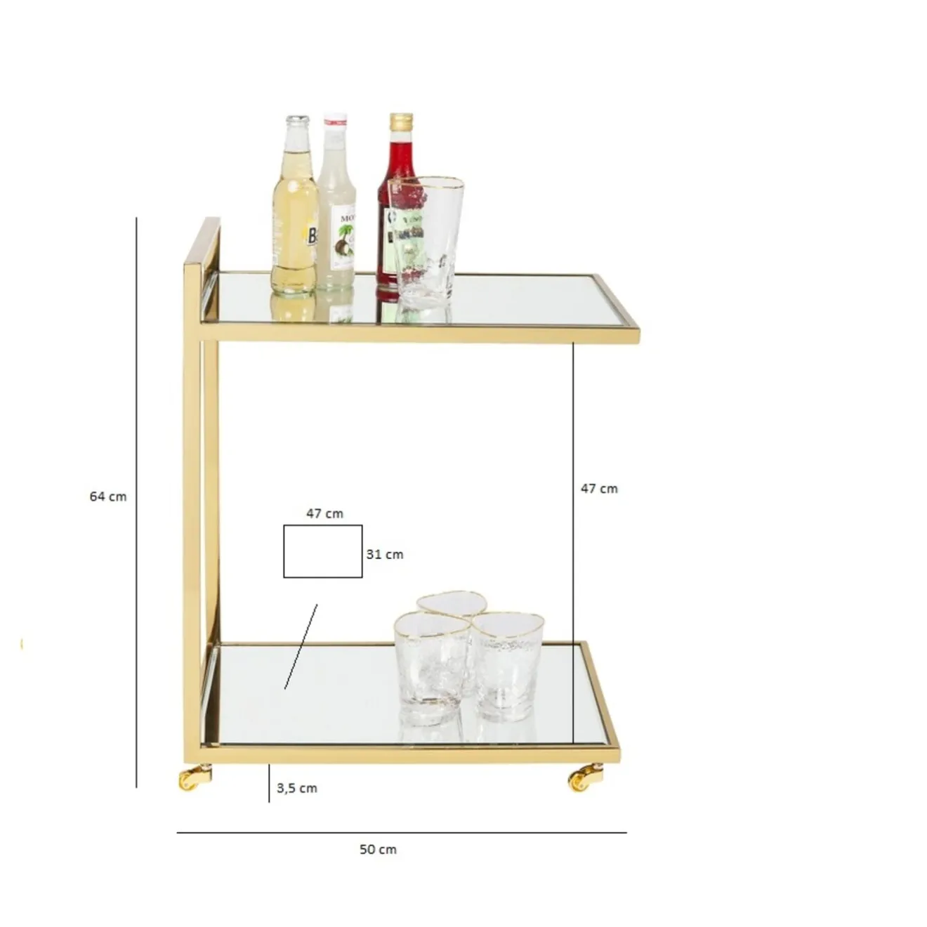 Informations Sur Les Produits: : Verre Miroite,Acier Inoxydable Revetement Titane,Roulettes: Acier Revetu De Titane,45 Kg Capacite De Charge Maximale,Livraison Monte