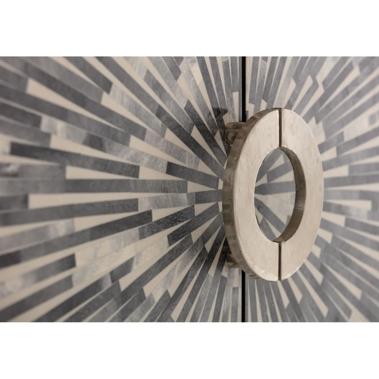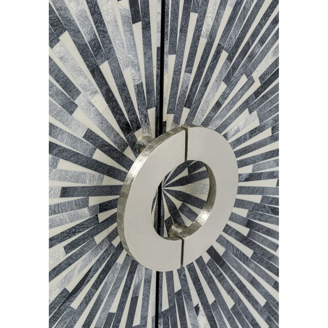 - A Luxurious Cabinet Sized 160X100X40Cm (H/W/D) With Grey And White Patterned Doors On A Black Metal Frame