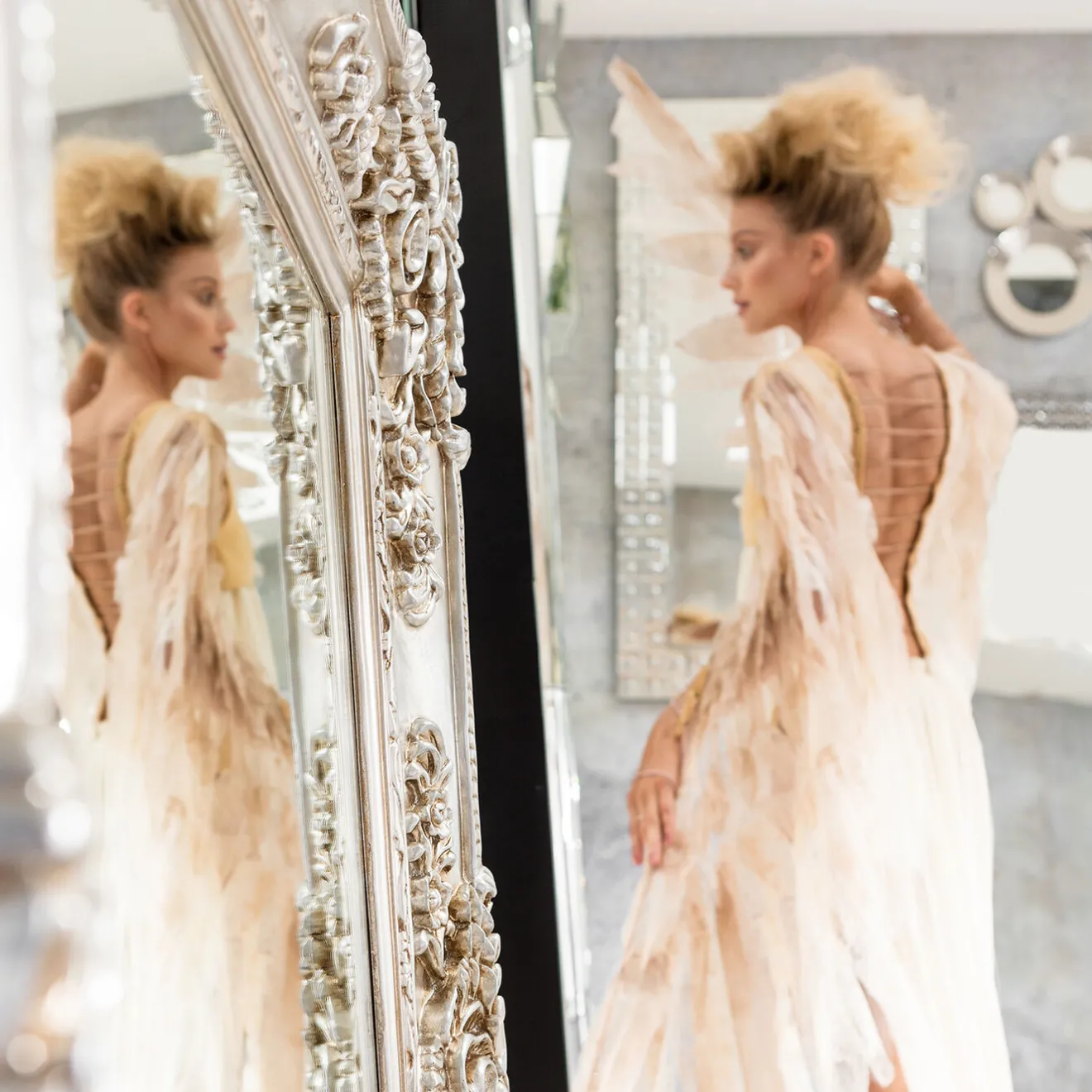 - An Extra-Large,Silver Baroque Mirror With Elaborately Worked Ornaments In An Antique Look