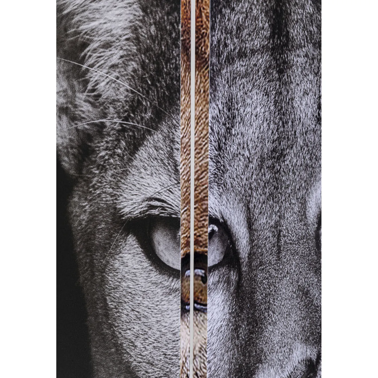 - Three-Part Room Divider With Print On Canvas And A Big Cat Design