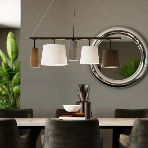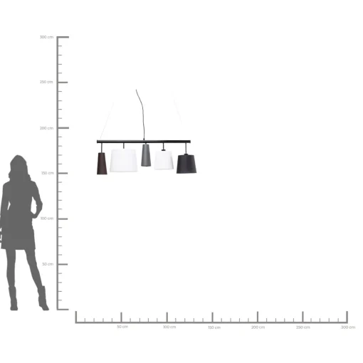 - One Metre Wide Pendant Lamp With Five Charming Shades In Black,White And Grey