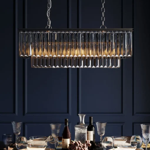 Voici Un Luminaire Original Et Déco,En Forme De Rectangle Transparent. La Lumiere Se Reflete Dans Toutes Les Baguettes De Verre Et Cree Une Lumiere Magique. 230 V,50/60 Hz,Douille E14,Nombre D´Ampoules 8,Max. 60 Watts,Ampoules Non Incluses