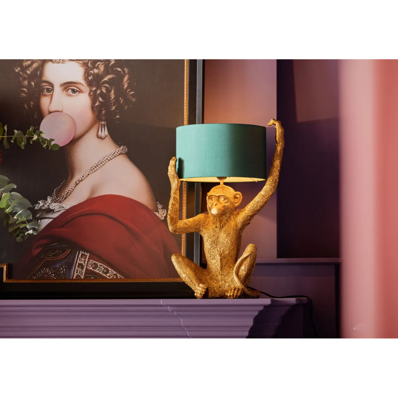 Ce Portrait D Une Dame Au Chewing-Gum Pourrait Presque Passer Pour Une Oeuvre D Art,La Rupture De Style En Fait Un Art Moderne Qui Embellira Votre Interieur. Le Motif,Partiellement Peint A La Main,Peut Etre Monte Horizontalement Sur N Importe Quel Mur Et Confere Un Look Romantique A Votre Style D Interieur. Avec Ses Couleurs Sobres Et Son Cadre En Bois Fonce,Il Est Du Plus Bel Effet Dans Une Chambre A Coucher.