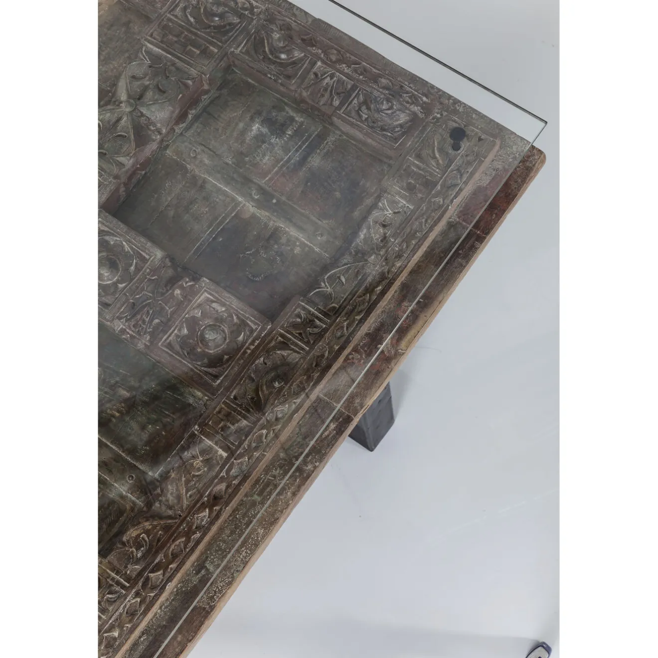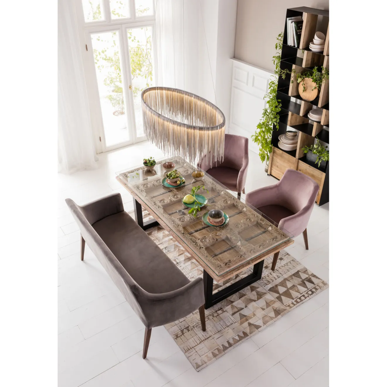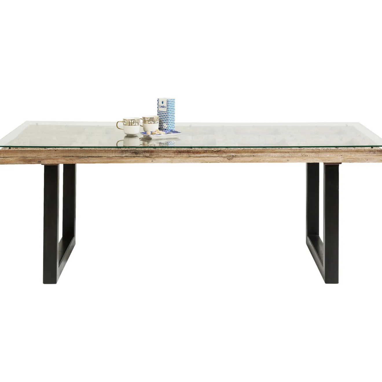 Informations Sur Les Produits: Plateau De Table: Verre Verre Trempe Esg Clair,Bois Massif Bois Recycle Mangue Cire,Pied: Acier Laque,100 Kg Capacite De Charge Maximale,Fabrique A La Main,Demonte,Soin Et Nettoyage: Ref. 25002 Nettoyant Meubles