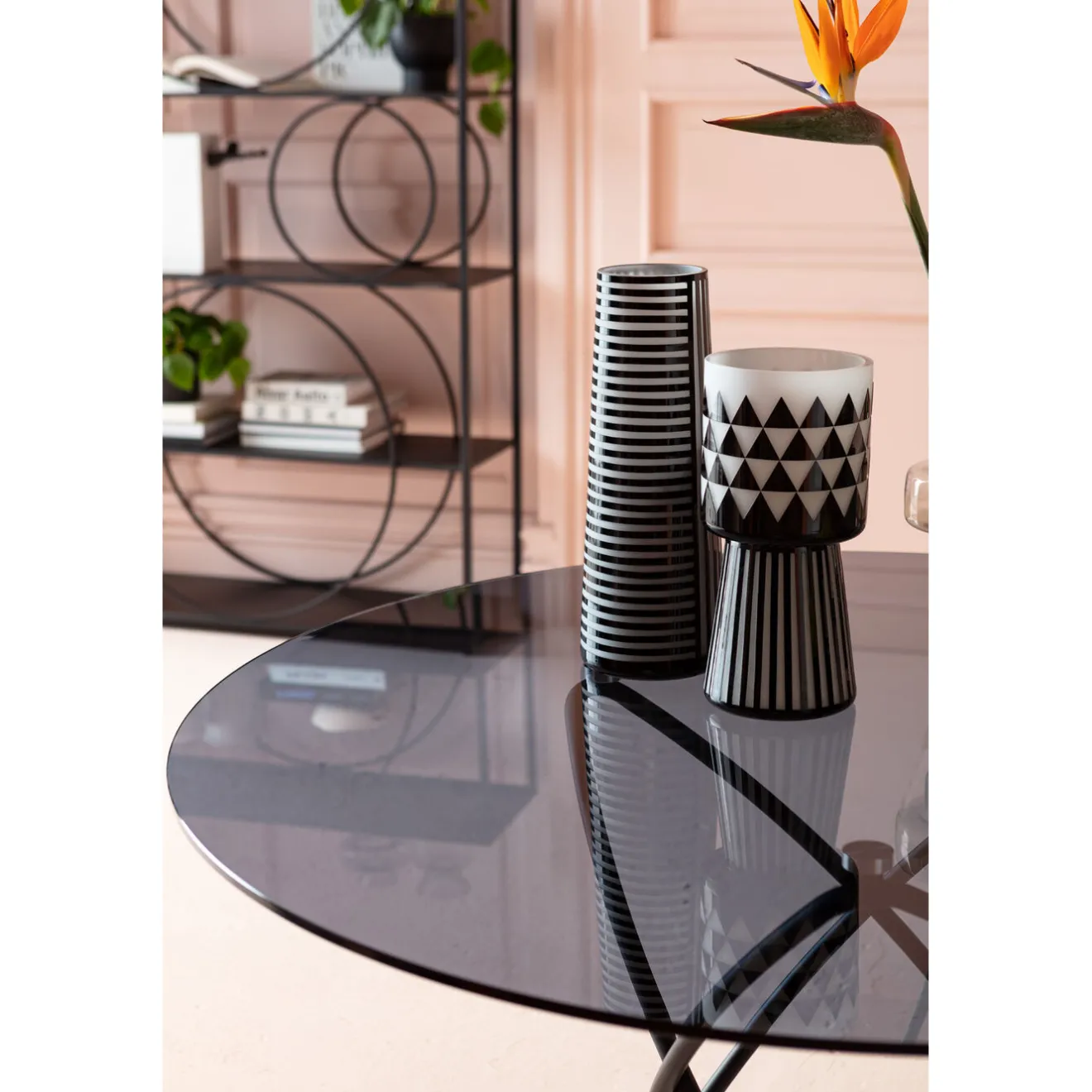 - Glass Table As A Visual Highlight For The Dining Area With A Dark Tinted Esg Glass Top And Black Base