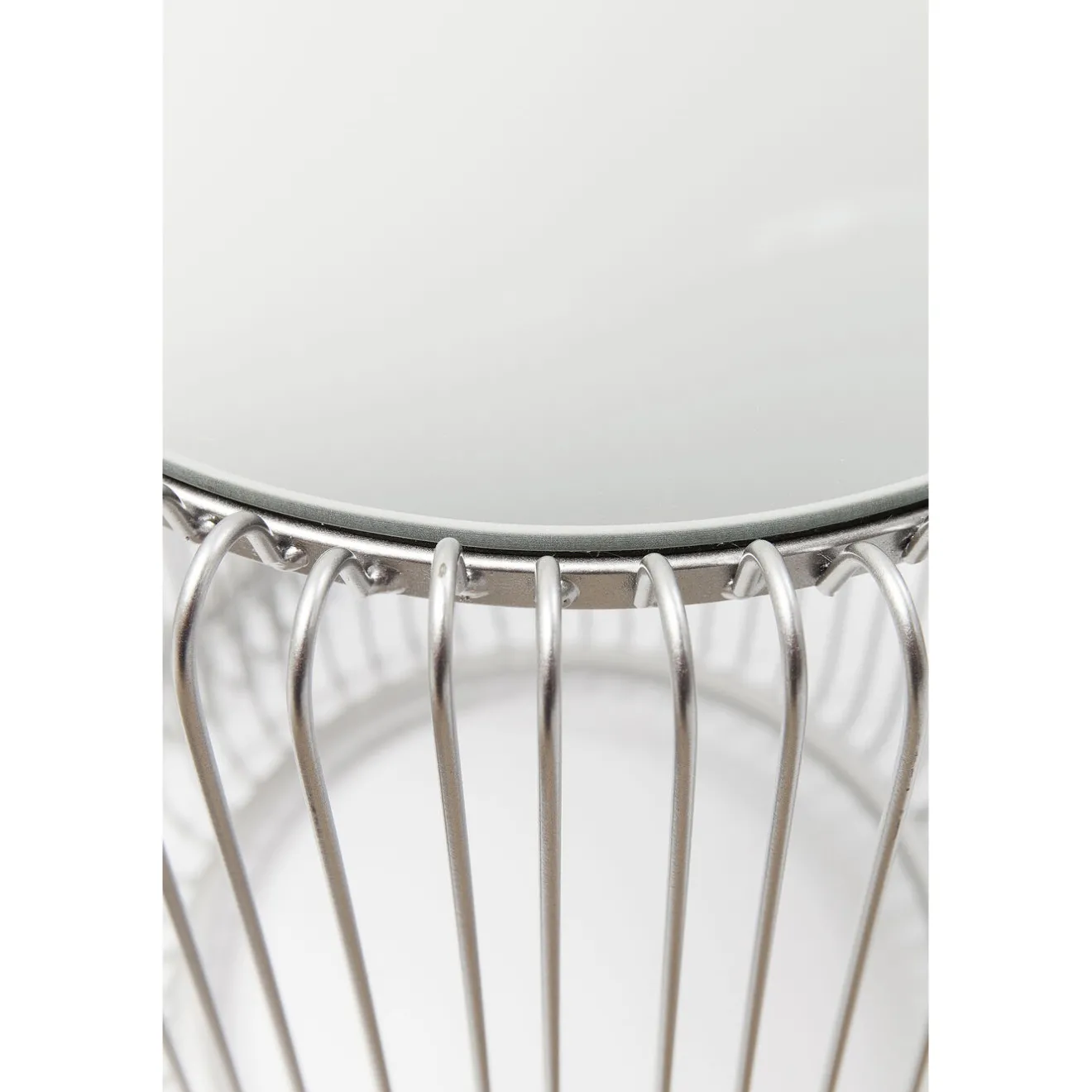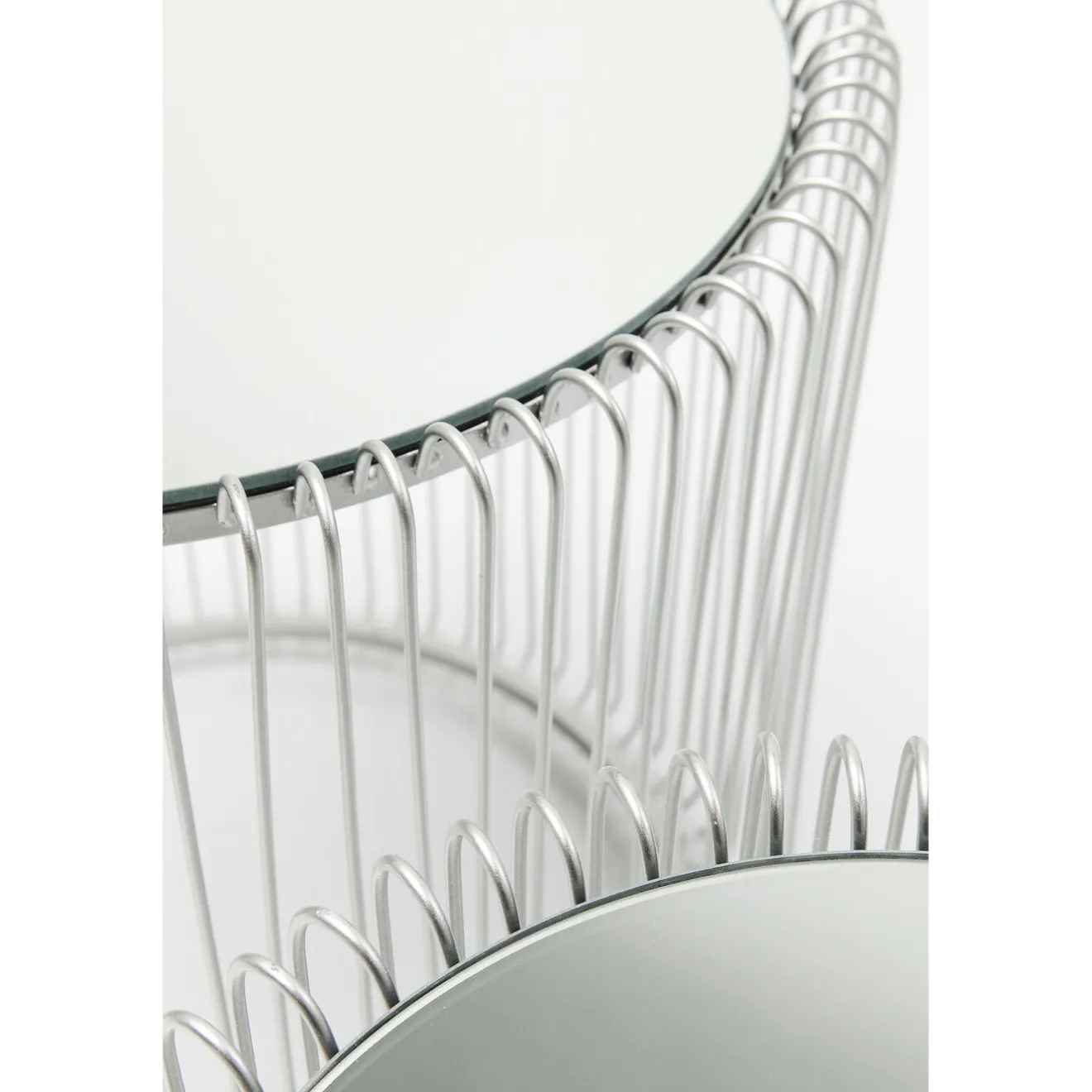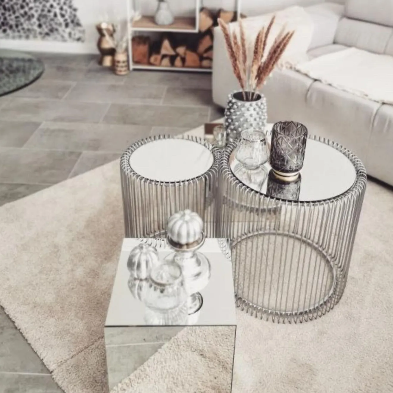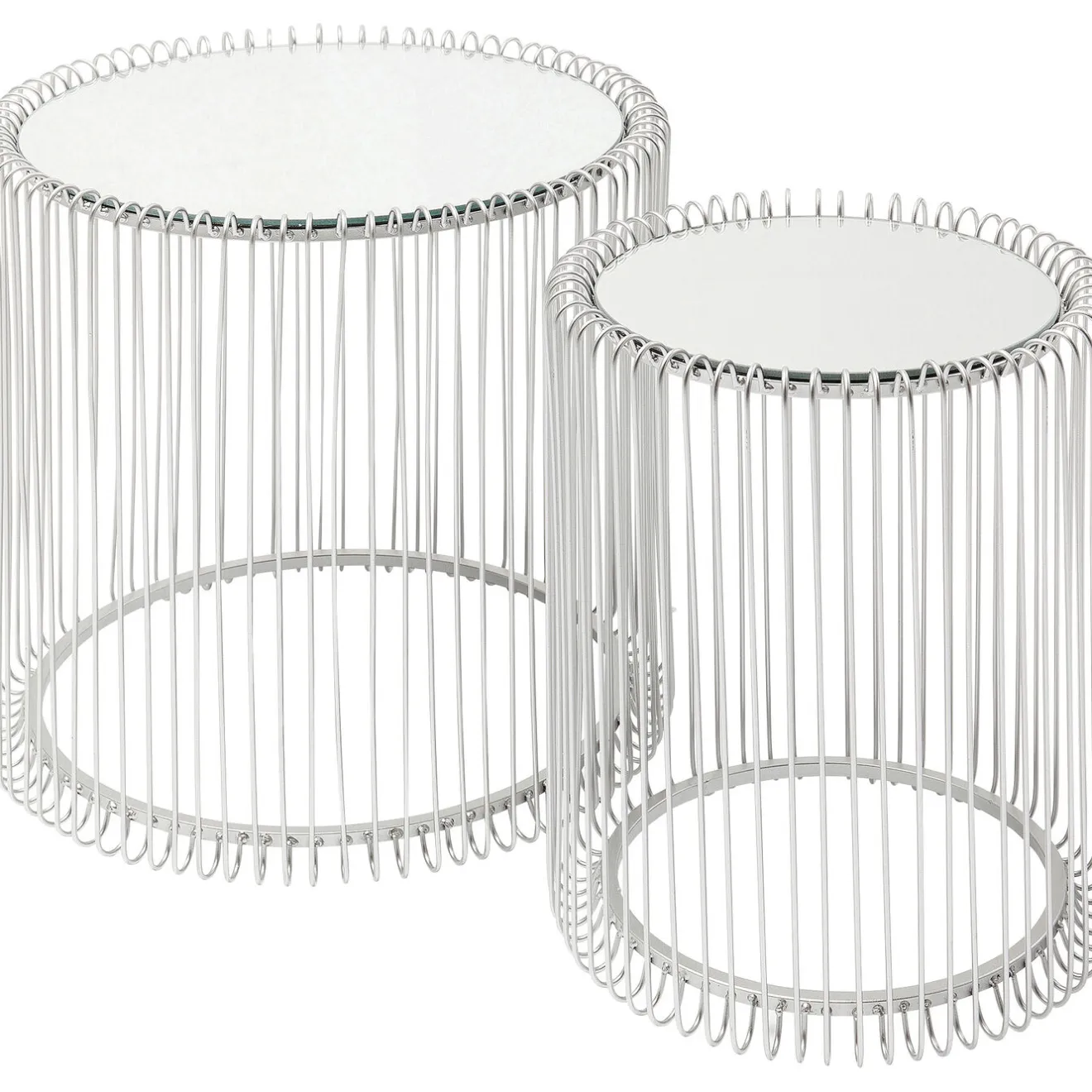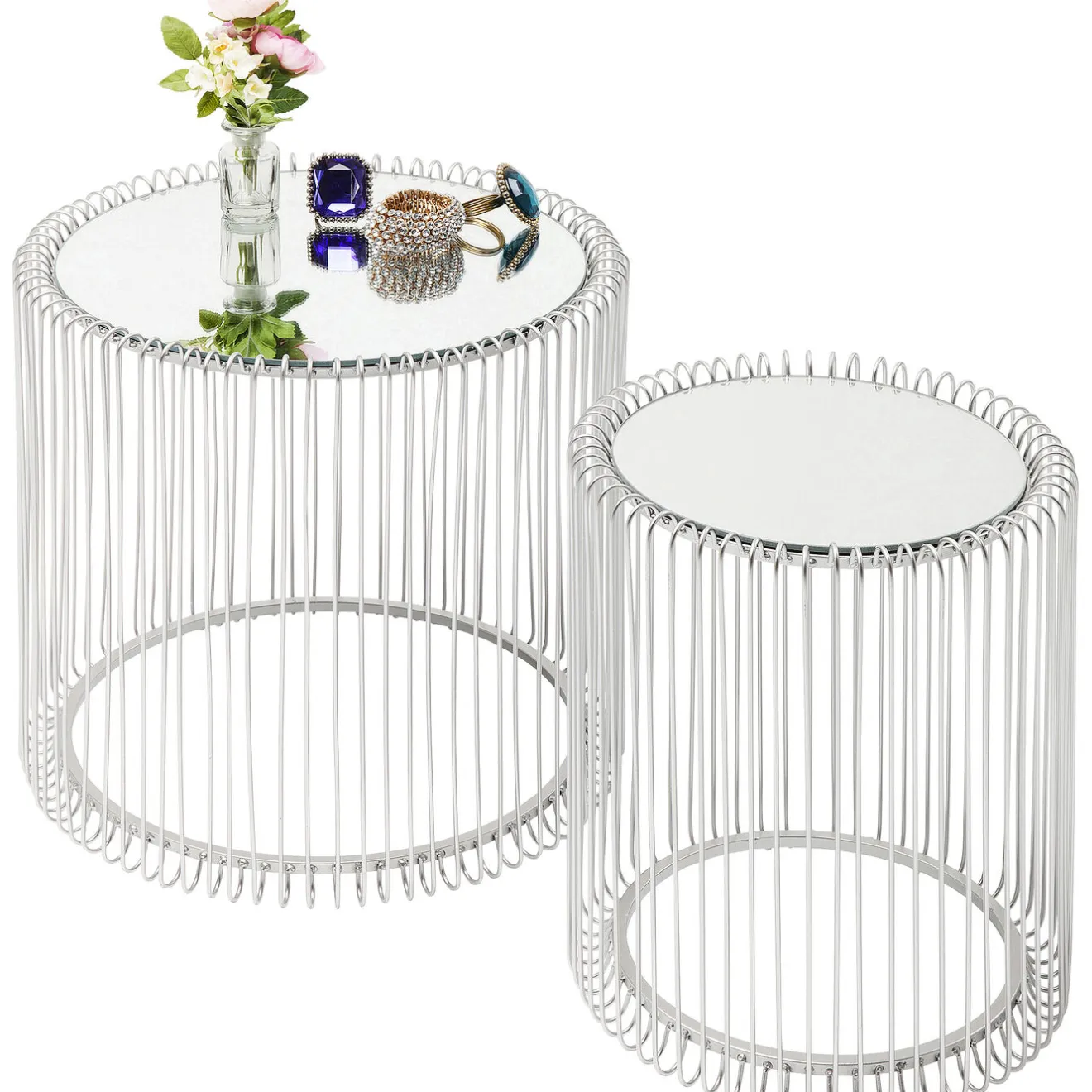 - A Set Of Two Glossy,Silver-Coloured Side Tables With Mirrored Top.