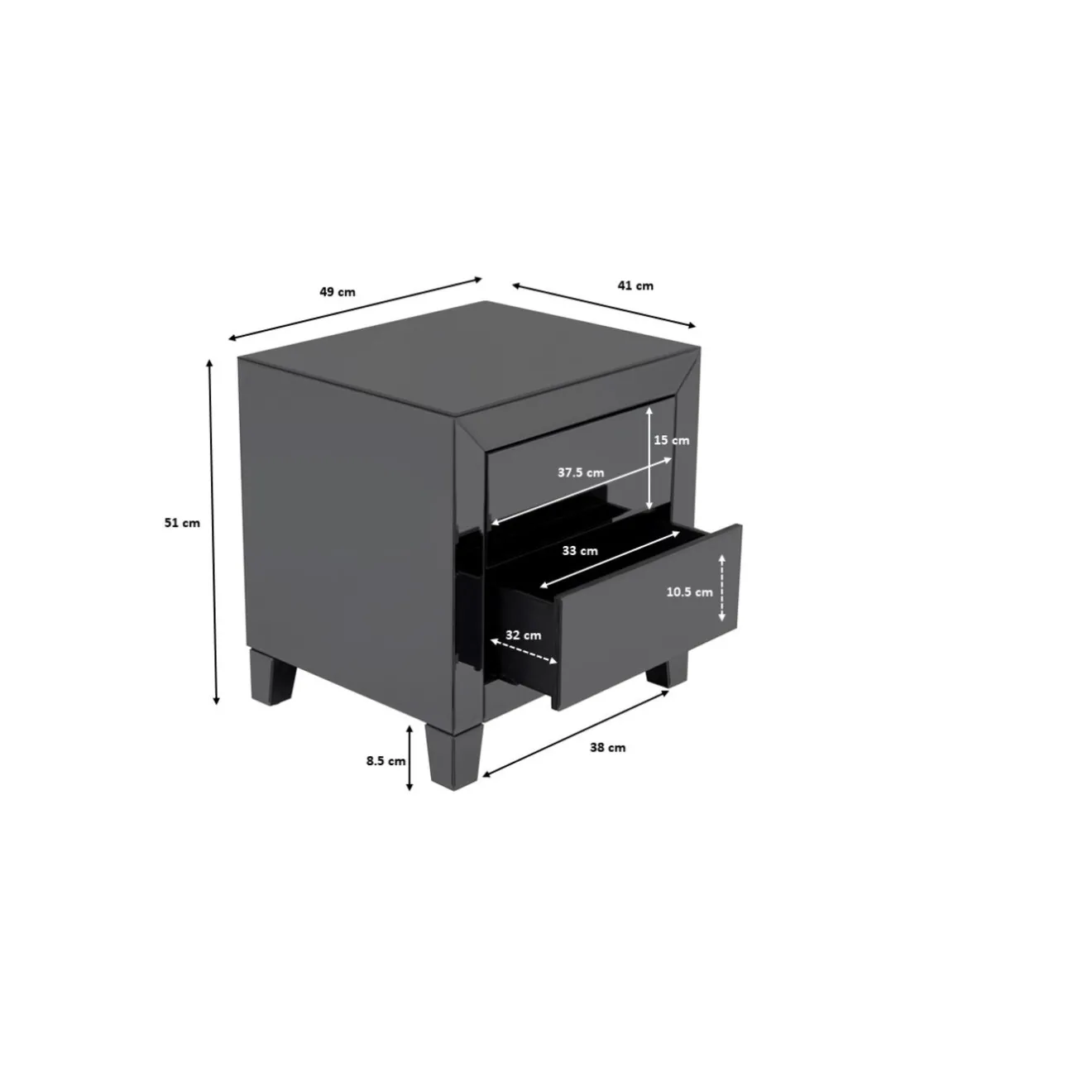 - Petite Commode De La Collection Luxury En Verre Miroite Gris. Elle Est Composee De Deux Tiroirs Avec Fonction Push-To-Open Pour Une Petite Touche De Luxe Au Quotidien.