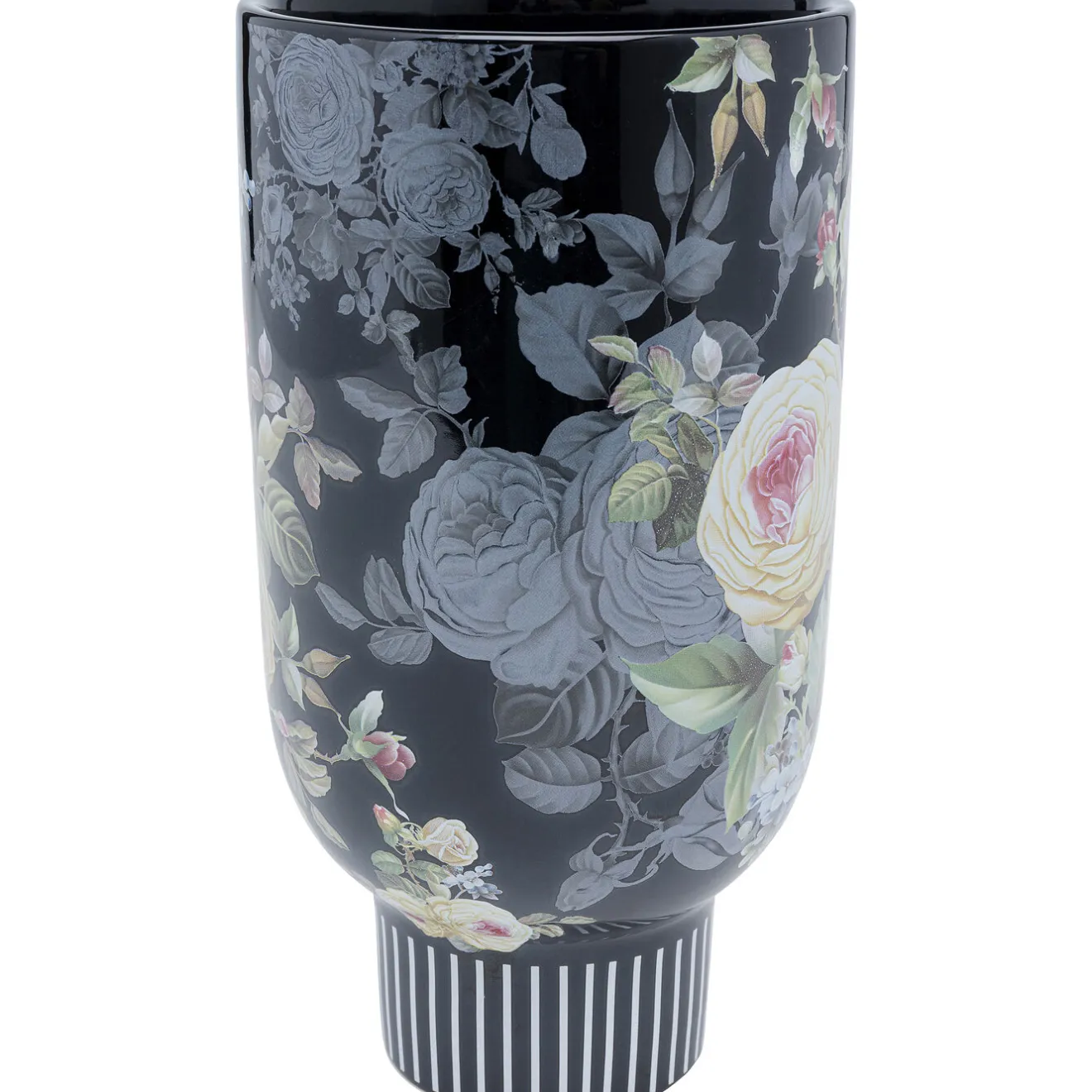 - Fait A La Main : Vase Décoratif Avec Un Envoutant Décor De Roses Sur Fond Noir