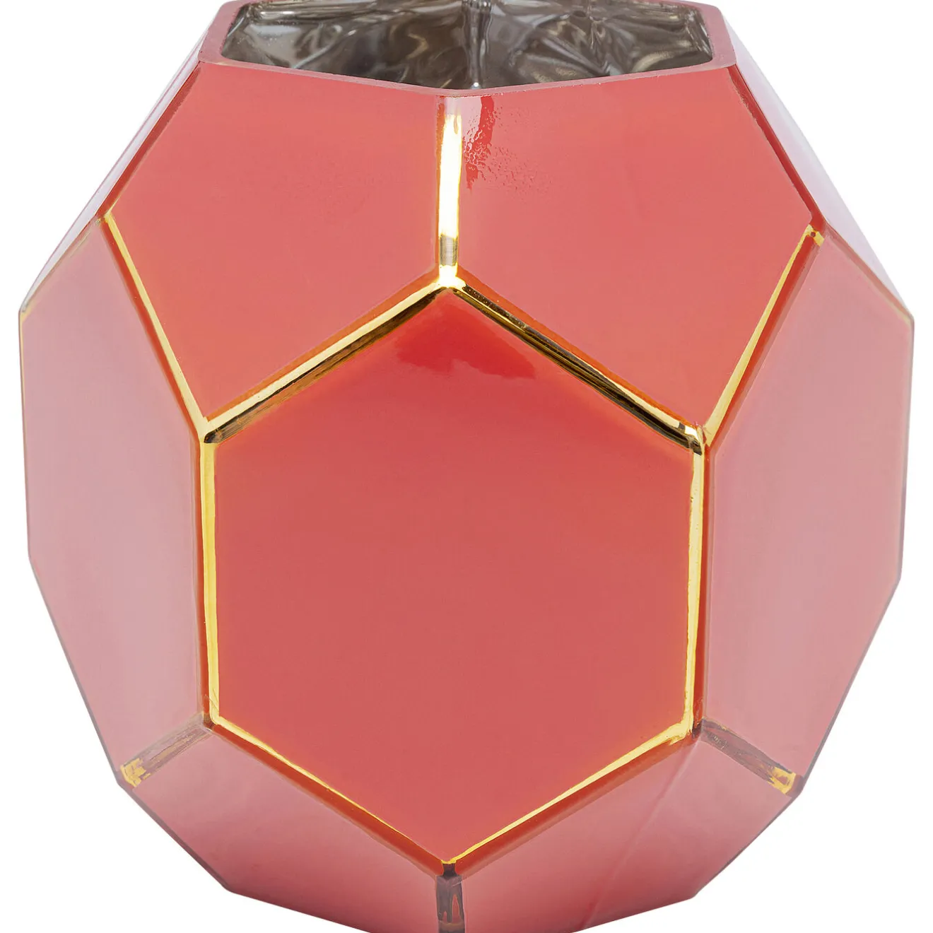 Les Vases Sont Un Outil Important Pour Les Artistes De L Amenagement. Avec Sa Forme Geometrique,Ce Vase En Verre Aux Lignes Droites Est Le Complement Parfait Pour Les Styles D Amenagement Modernes. Meme Sans Décoration Florale,Il Attire L Attention Avec Ses Angles Et Ses Bords. Les Hexagones Rouge Brique Du Vase Sont Traverses Par Des Lignes Dorees Qui Lui Conferent Un Look De Bijou. Sur Des Etagères Noires Ou Blanches Ou Sur Des Buffets,Il Apporte Une Touche De Couleur Qui Est Aussi Un Signe Distinctif De Votre Bon Gout.