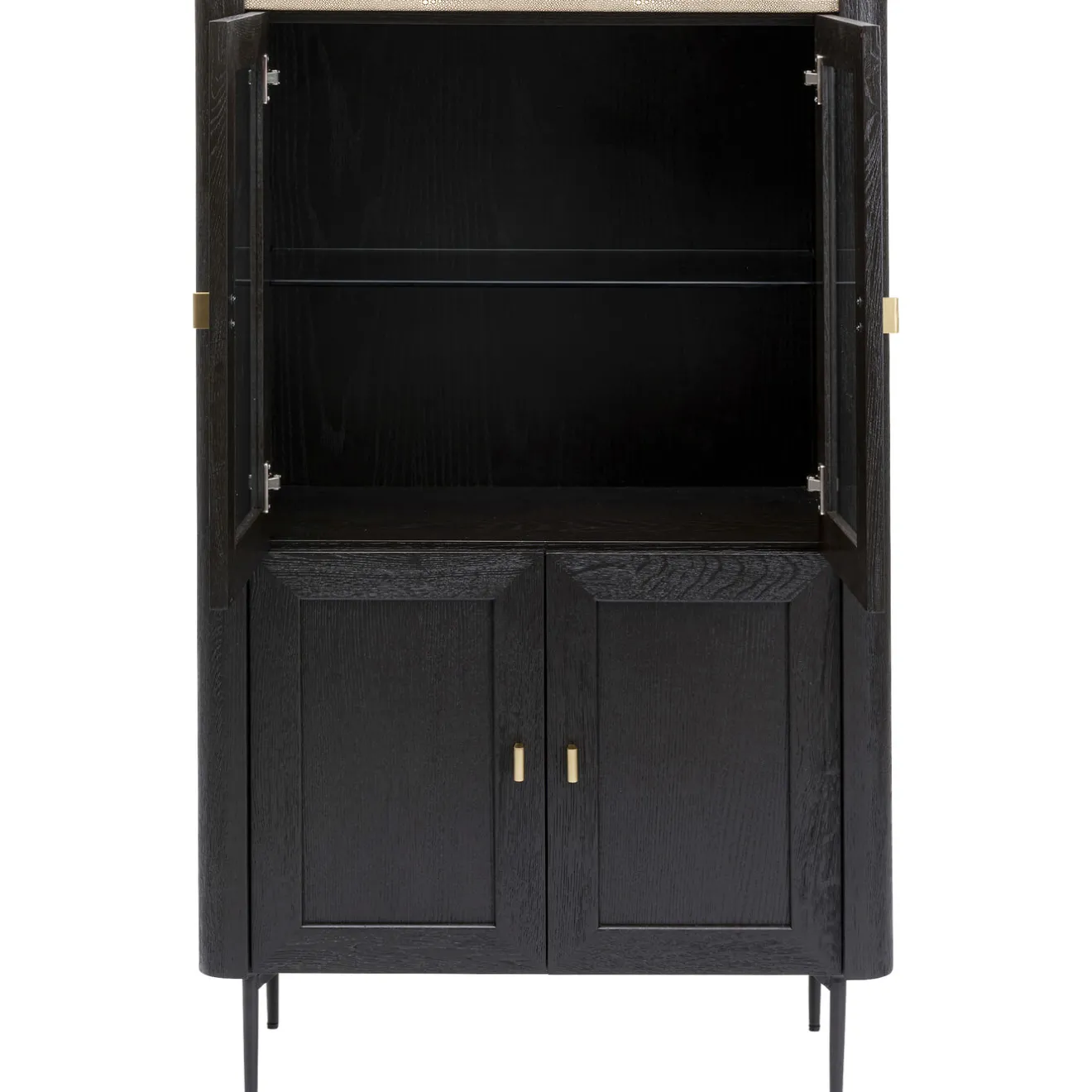 - An Elegant Display Cabinet,Manufactured From Selected Materials In The Tradition Of The Finest Italian Furniture Design,The Combination Of Black-Brown Solid Oak And Oak Veneer With Cream-Coloured Covers In A Fine Stingray Skin Look Has Exclusive Style