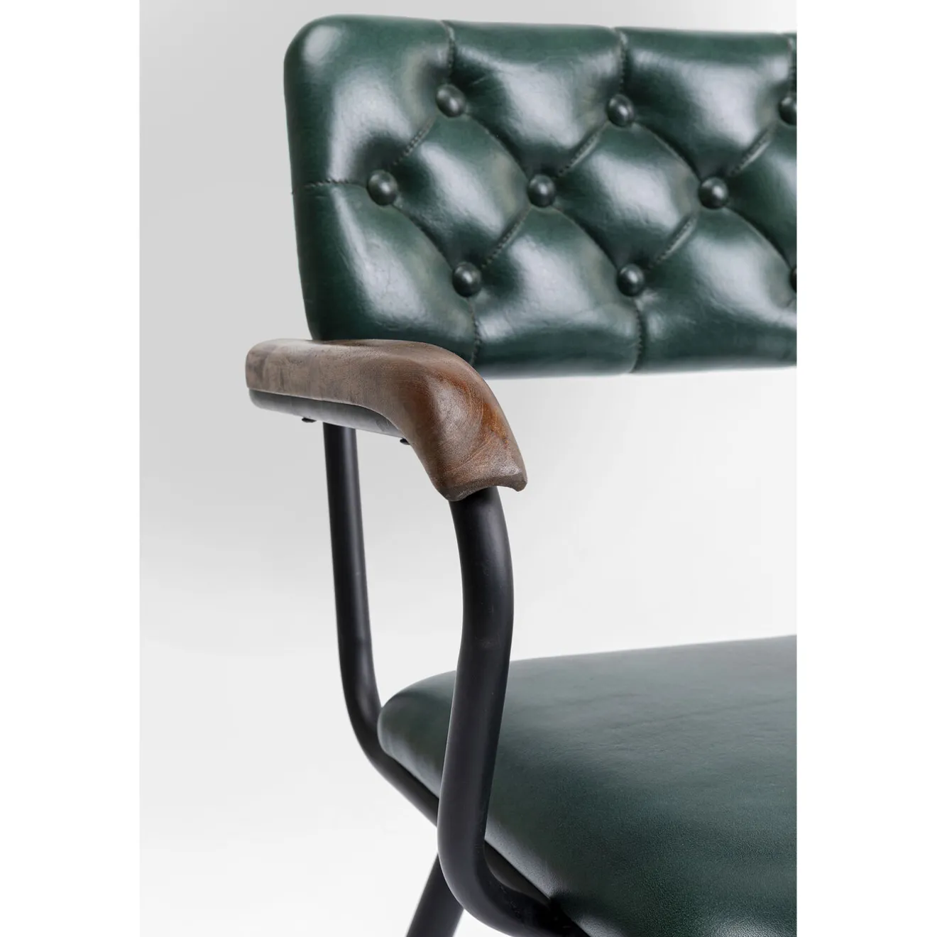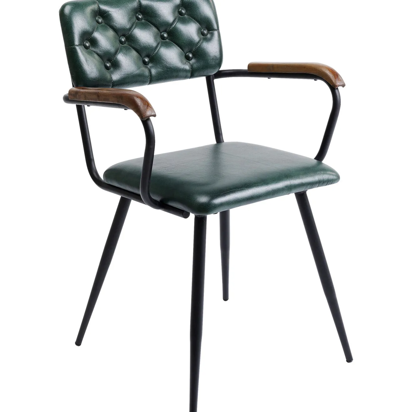- Green Metal Armchair In The Industrial Style With Leather Upholstery