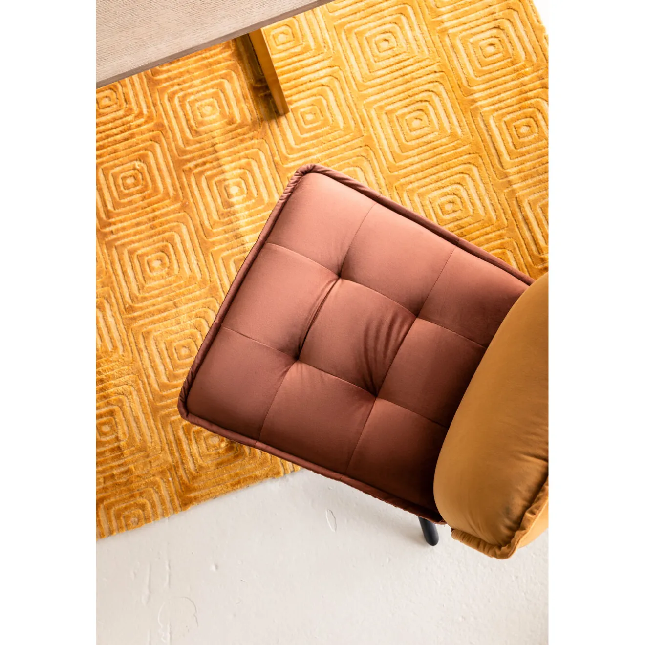 Voici Une Interpretation Creative De La Chaise Rembourree: Son Assise,Avec Son Piquage Boutons,Est Semblable A Un Coussin De Sol Tandis Que Le Dossier Rembourre Ressemble A Un Coussin De Canapés Avec Des Coutures Passepoilees. Ce Melange Et Sa Belle Finition Effet Velours La Rendet A La Fois Confortable Et Elegante.