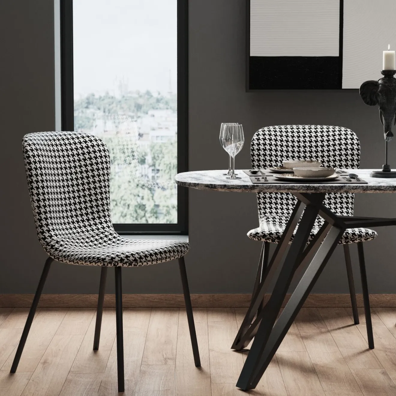 Un Design,Deux Fois Plus De Possibilites De Style : L Ensemble De Deux Elegantes Chaises Rembourrées Cree De La Tension Avec Son Motif Pied-De-Poule Et Envoie Des Vibrations Clairement Retro. Avec Ce Lot De Deux Chaises Hors Du Commun,Vous Apportez Une Touche D Originalite A Votre Interieur. Les Coques Incurvees Promettent En Outre Un Grand Confort D Assise.