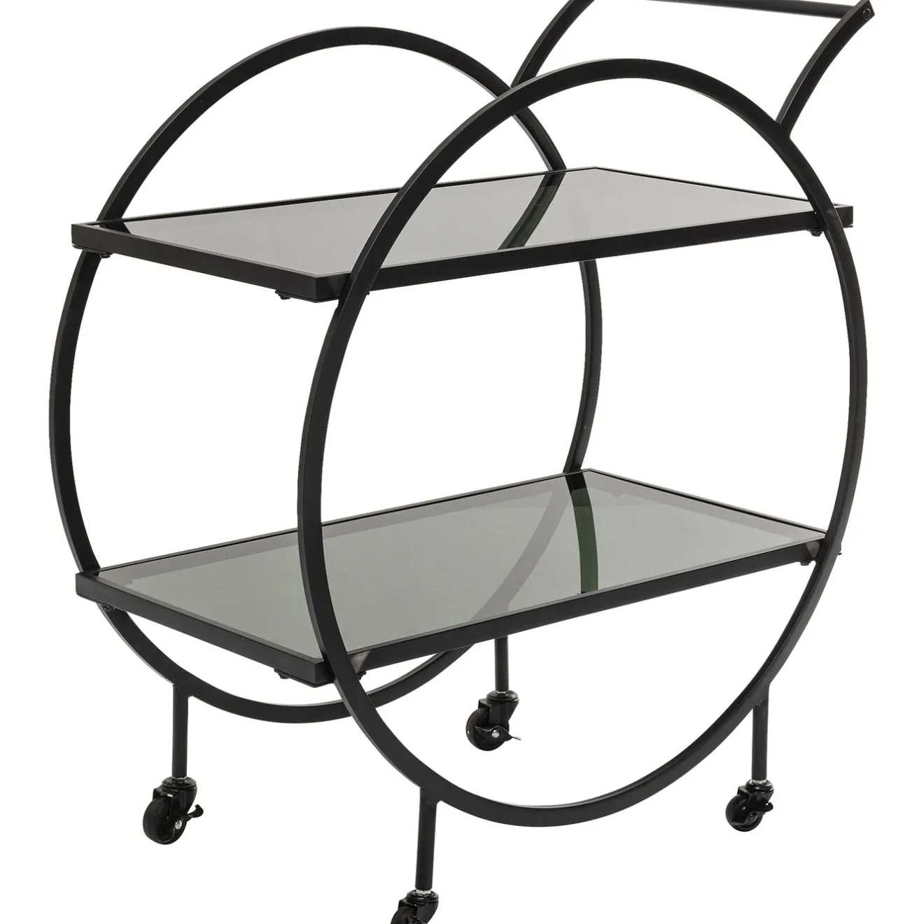 - Elegant Serving Trolley In Black With Dark Glass Tops And A Touch Of Retro Design