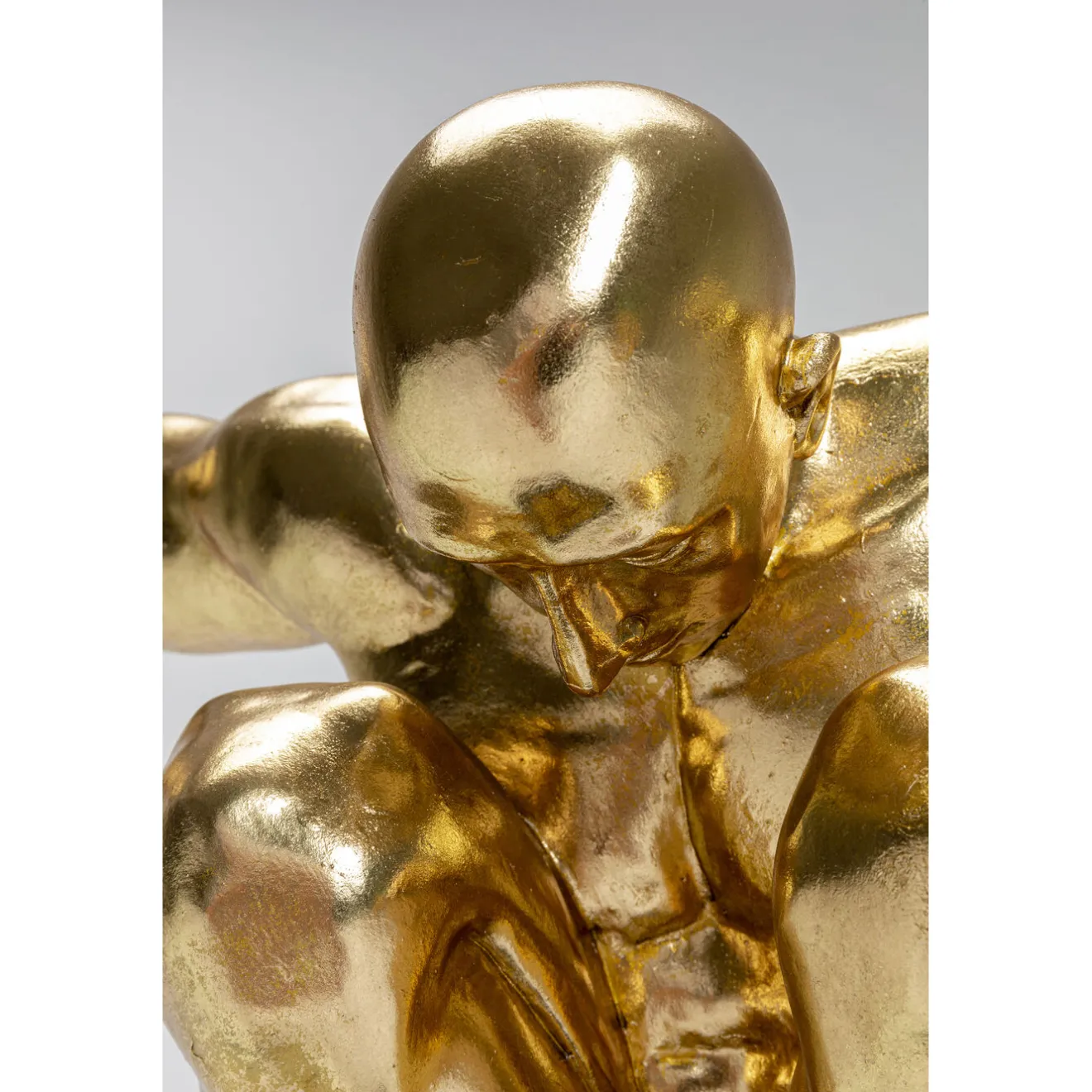 - Shiny Gold Décorative Figure Of A Muscular Subject On A Black Marble Base