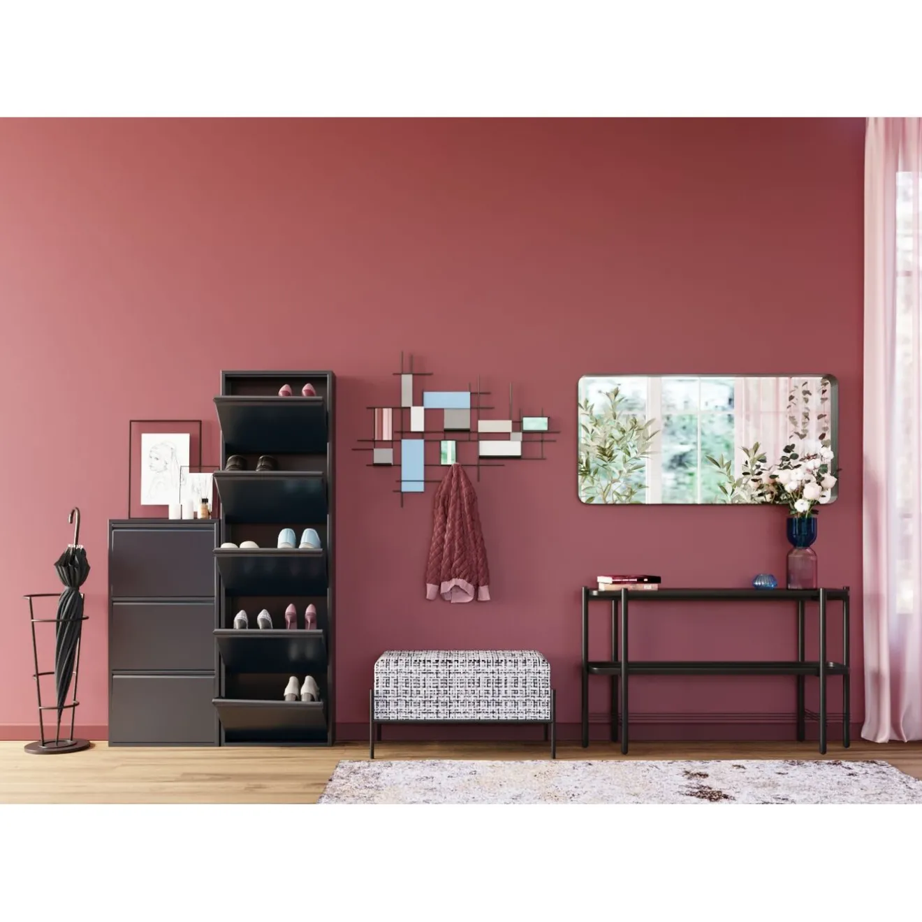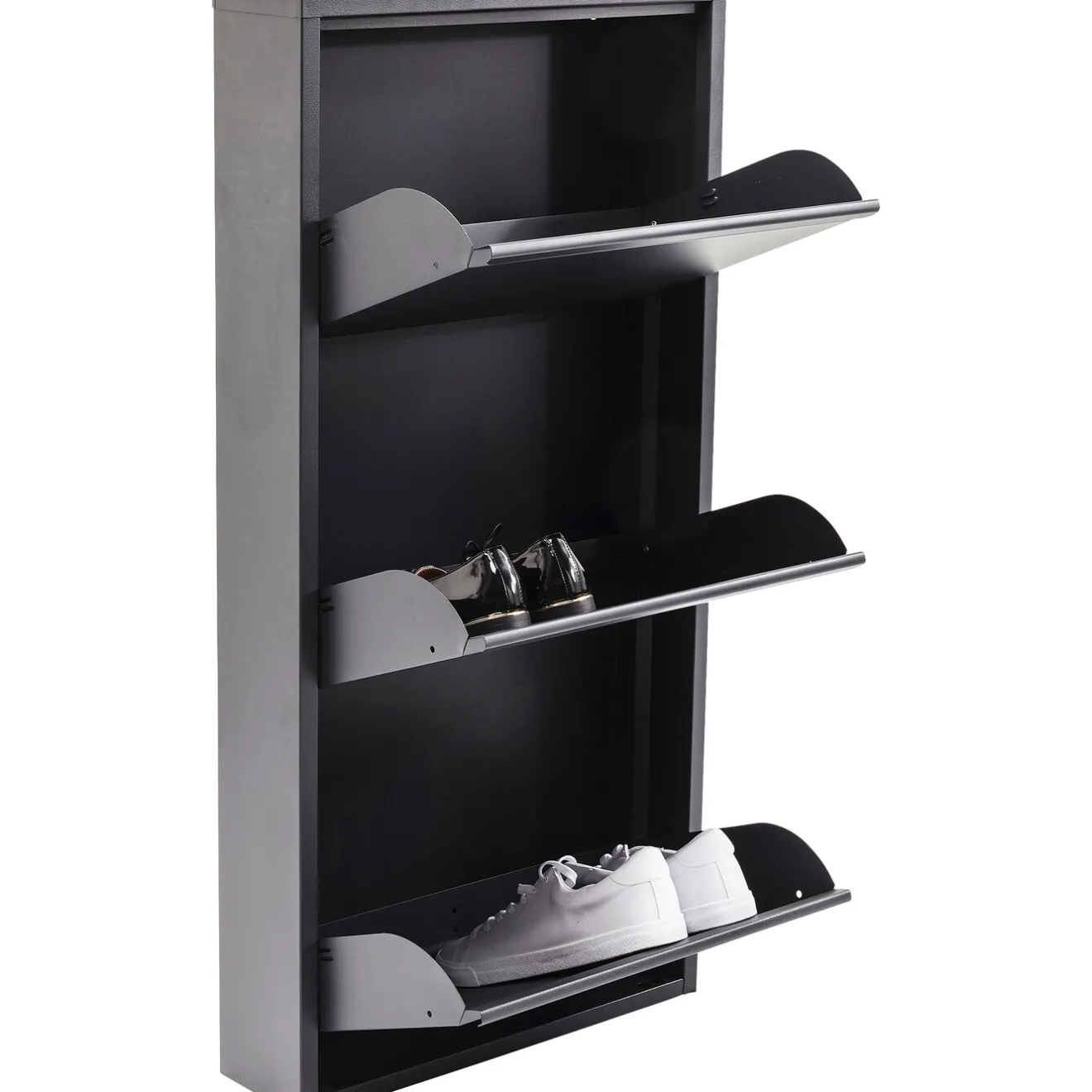 - Smart Storage Space! Particularly Flat Shoe Cabinet With Three Practical Tilting Compartments