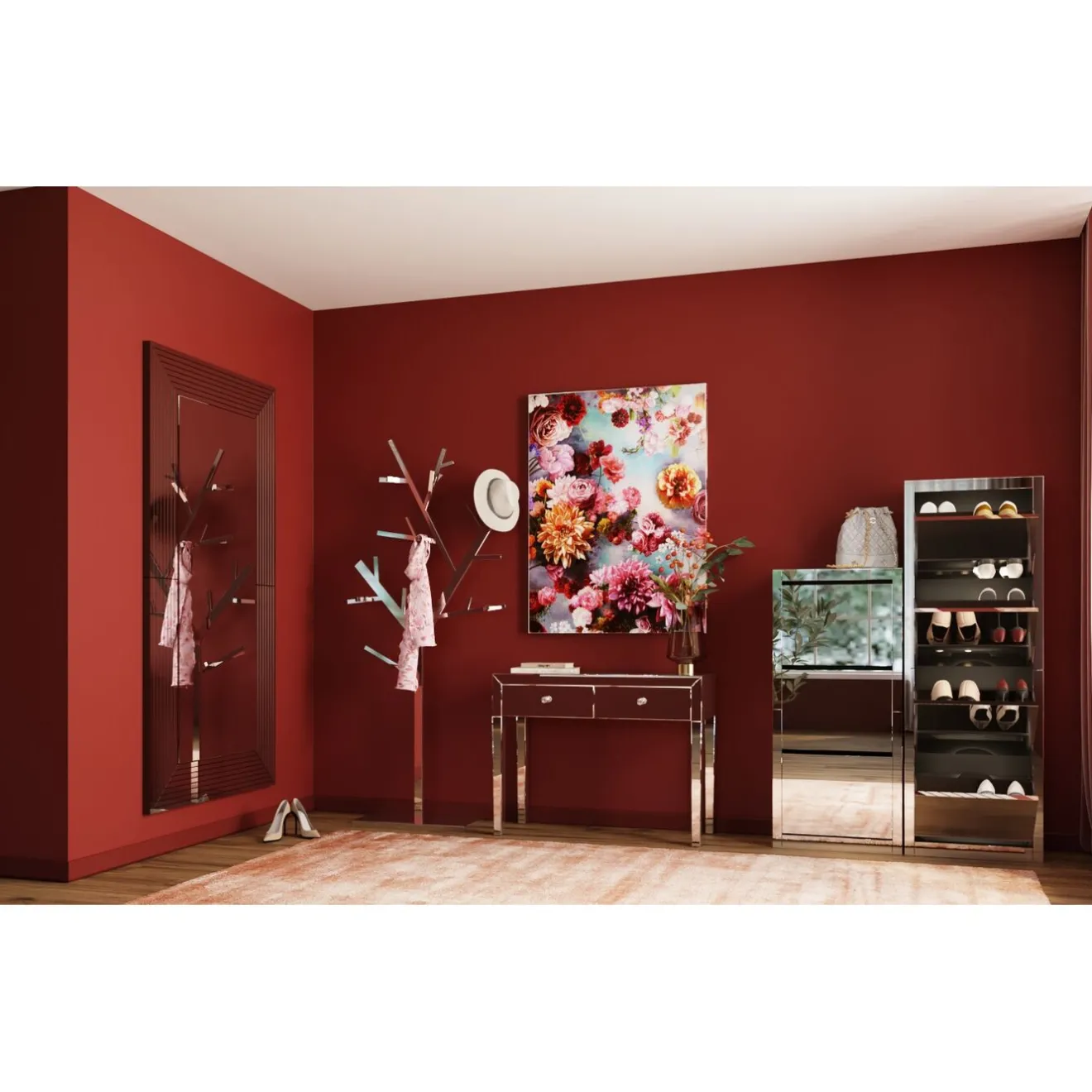 - This Luxury Version Of A Shoe Cabinet With Four Tilting Compartments Is Completely Mirrored