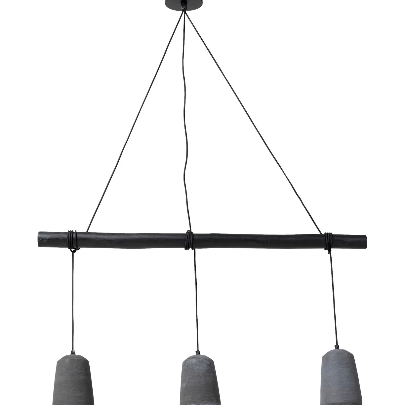 - Pendant Lamp All In Black With Three Shades On A Solid Beech Wood Rod. Each Lamp Is Handcrafted And Unique
