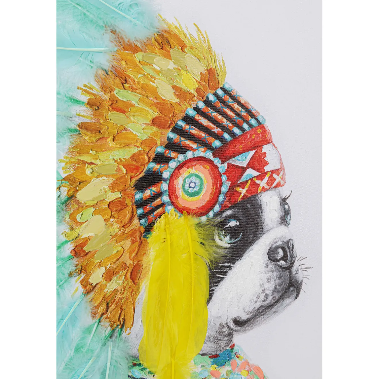 Si Vous Aimez L Originalite Avec Une Touche De Folie,Vous Allez Adorer Cette Peinture Murale : Un Chien Portant Une Coiffure Elaboree. S Agit-Il D Un Bullie Ou D Un Terrier De Boston ? Les Grandes Plumes Turquoises Combinees Aux Autres Couleurs Du Tableau Mural Apportent Des Accents Joyeux Et Colores. Le Tableau Est En Partie Realise A La Main. La Curiosite A La Vue De Ce Tableau Sera Definitivement Eveillee. Pour Les Fans De Chiens,C Est Un Highlight Absolu !