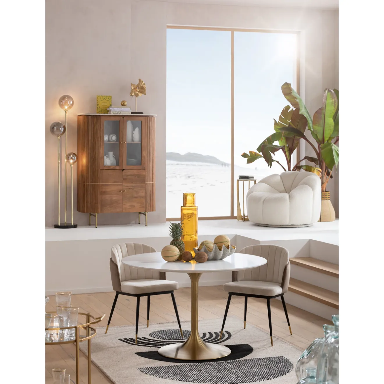- Table De Salle À Manger Ronde Blanche : Un Classique Du Design Avec Un Pied Tulipe Style,Ici Dans Le Coloris Laiton