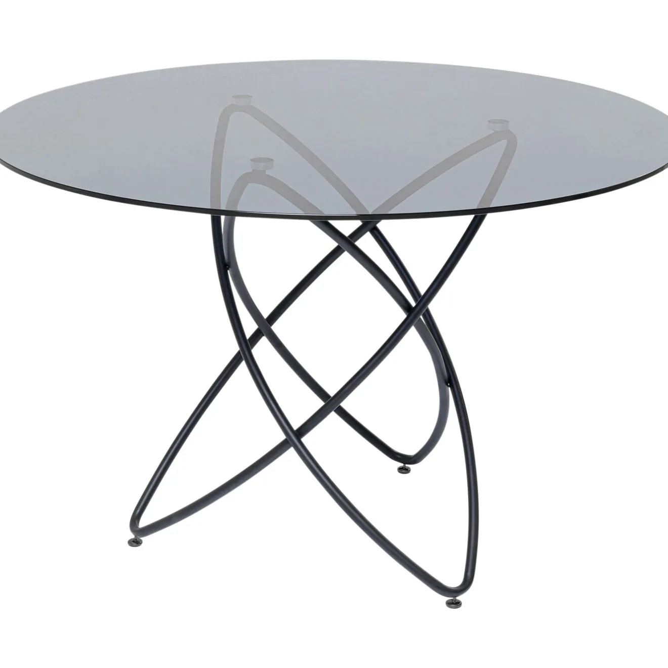 - Glass Table As A Visual Highlight For The Dining Area With A Dark Tinted Esg Glass Top And Black Base