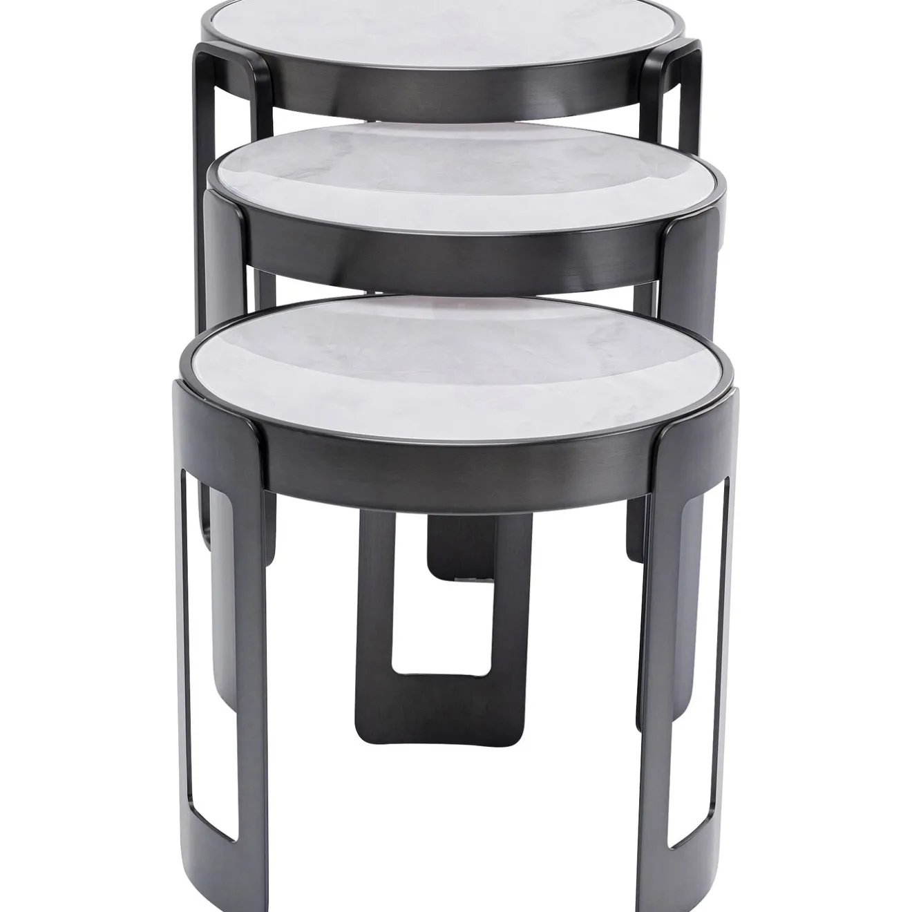 - Set De Trois Tables D’Appoint Extravagantes : Trois Tables Basses Rondes En Noir De Differentes Tailles Et Avec Un Elegant Imprime Marbre En Blanc