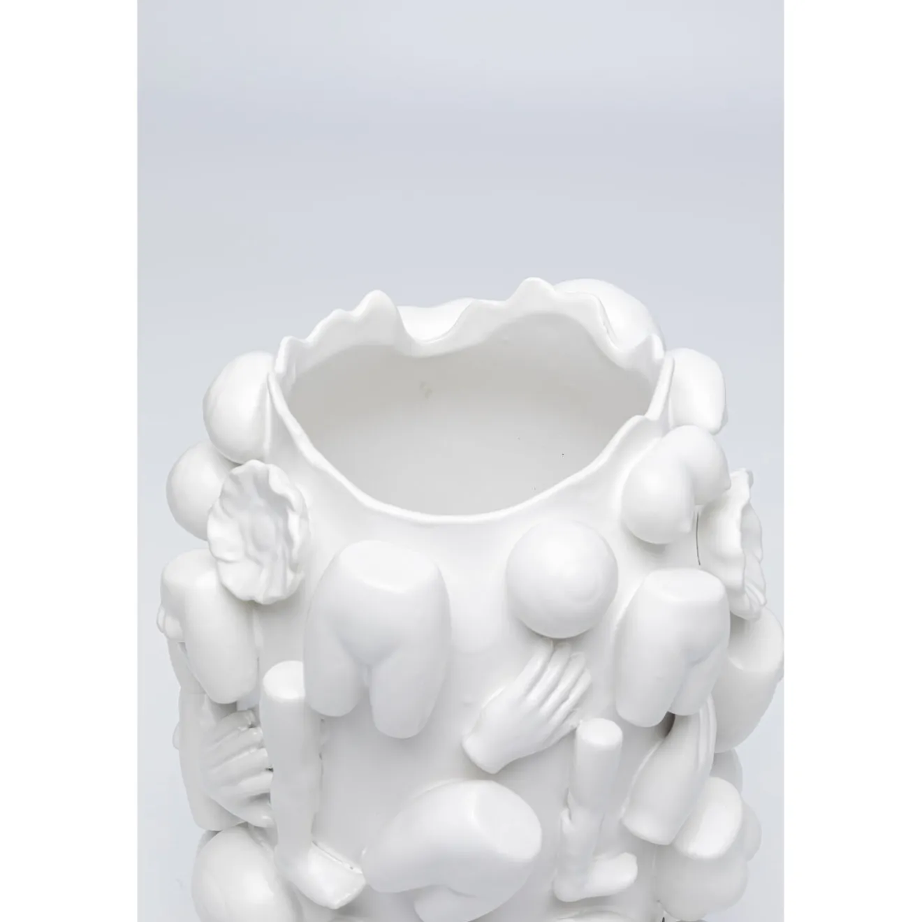 - A White,Round Vase With Sensuously Surreal Décor-A Masterpiece Of Ceramic Craft For The Daring