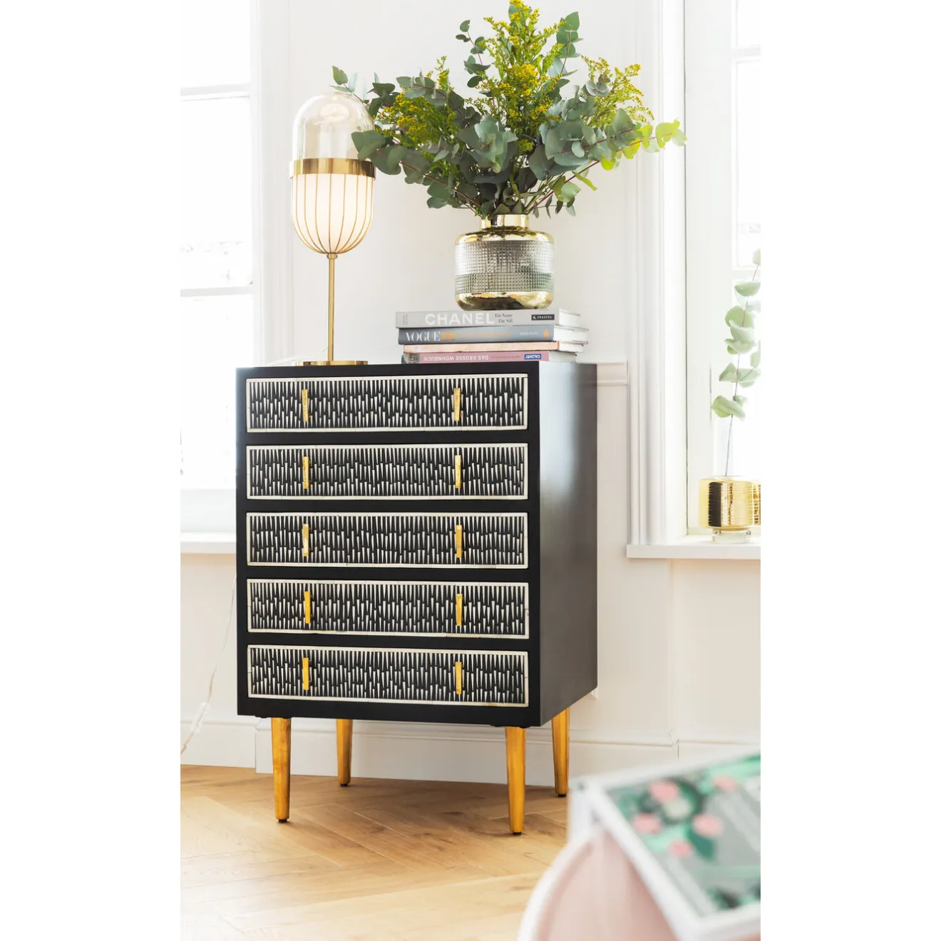 - The Linear Graphic Embossing Of The Glass Gets A Glamorous Upgrade With The Shiny Gold Accents.